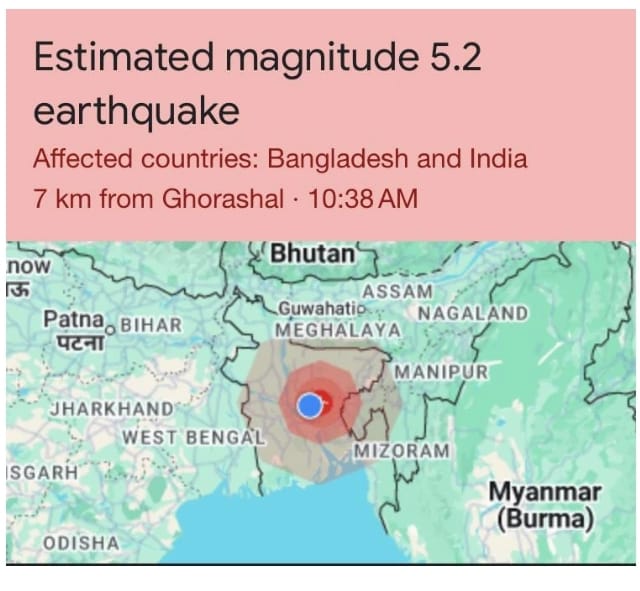 ঢাকাসহ বাংলাদেশের অন্যান্য স্থানে ৫.২ মাত্রার ভূমিকম্প