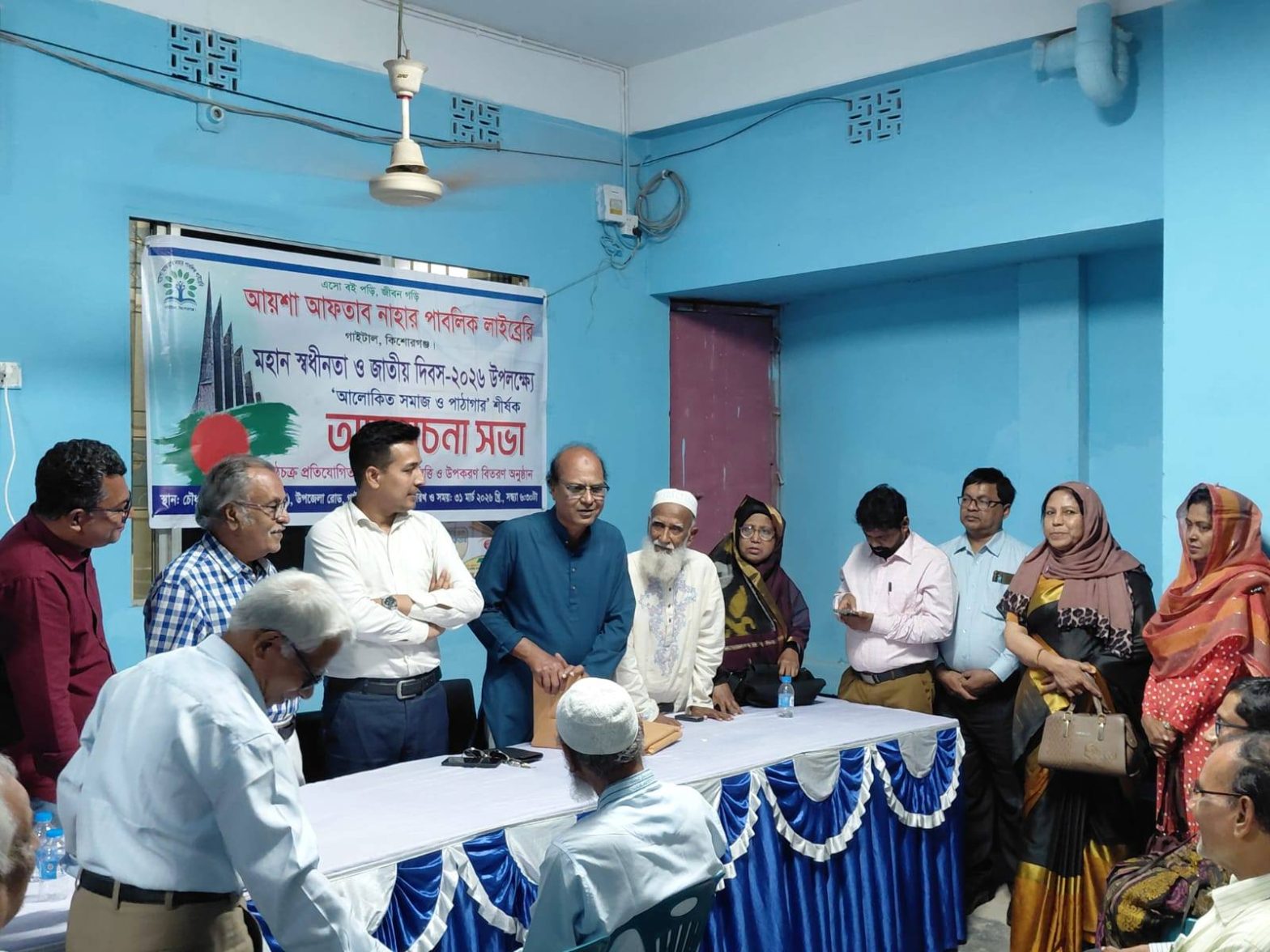 কিশোরগঞ্জে আয়শা আফতাব নাহার পাবলিক লাইব্রেরির আয়োজনে মহান স্বাধীনতা ও জাতীয় দিবস ২০২৬ উপলক্ষে আলোকিত সমাজ ও পাঠাগার শীর্ষক আলোচনা সভা অনুষ্ঠিত হয়েছে। ৩১ মার্চ সন্ধায় কিশোরগঞ্জ সদর উপজেলা রোডের চৌধুরী মহলে আয়োজিত সভায় প্রধান অতিথি ছিলেন জেলা সরকারি গণগ্রন্থাগারের সহকারী পরিচালক আজিজুল হক সুমন। প্রধান আলোচক ছিলেন জেলা পাবলিক লাইব্রেরির সাবেক সাধারণ সম্পাদক বিশিষ্ট… Continue reading স্বাধীনতা দিবসে সেরা পাঠকদের সম্মাননা ও পুরস্কার প্রদান করছে আয়েশা আফতাব নাহার পাবলিক লাইব্রেরি