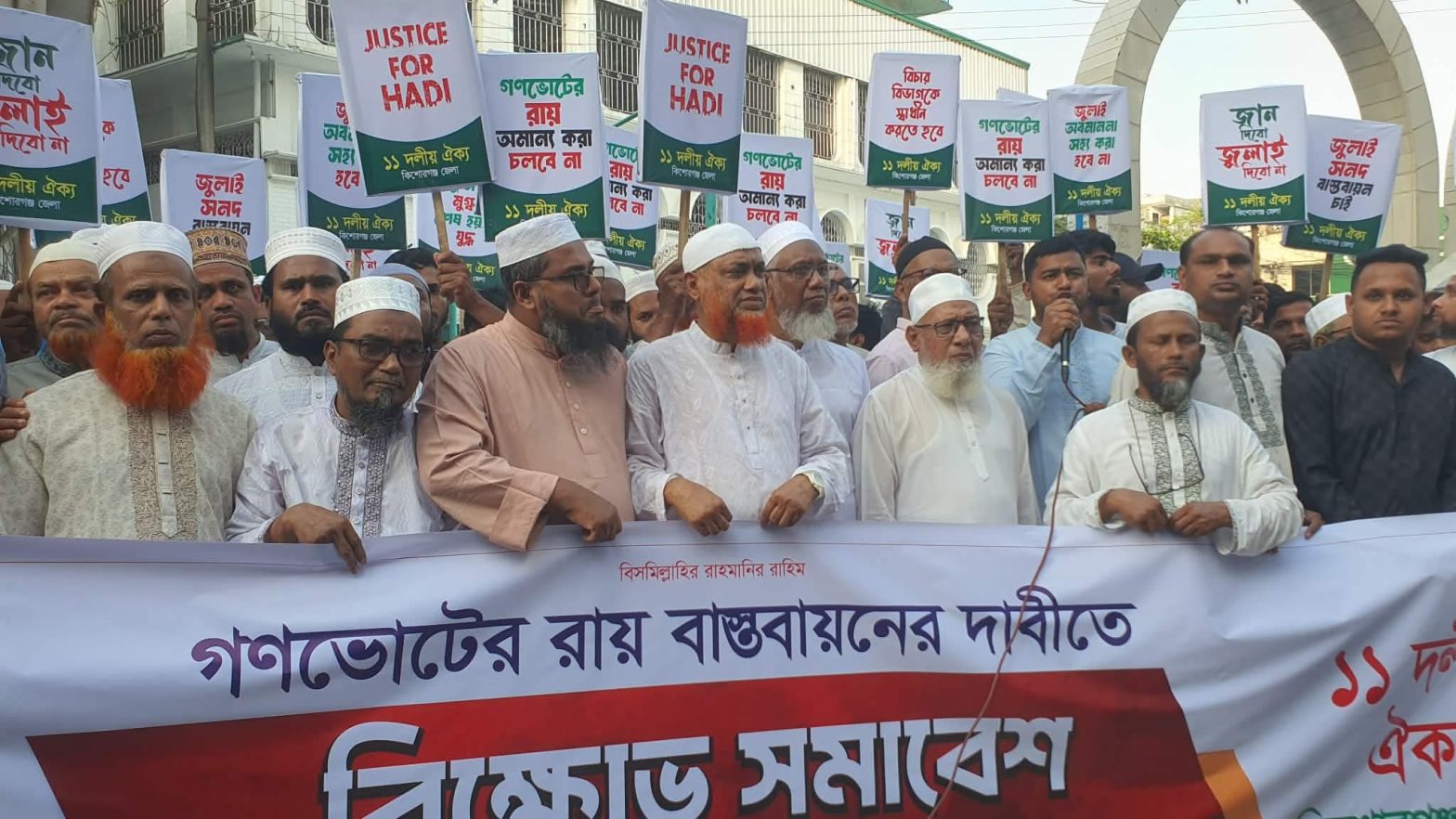 গণভোটের রায় বাস্তবায়নের দাবিতে কিশোরগঞ্জে ১১দলের বিক্ষোভ
