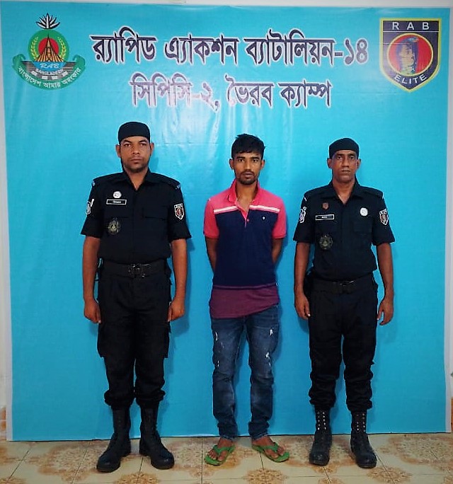 ভৈরব ক্যাম্পের স্কোয়াড কমান্ডার সিনিয়র সহকারী পুলিশ সুপার মোহাম্মদ আক্কাছ আলী এক প্রেস বিজ্ঞপ্তিতে এসব তথ্য নিশ্চিত করেছেন।