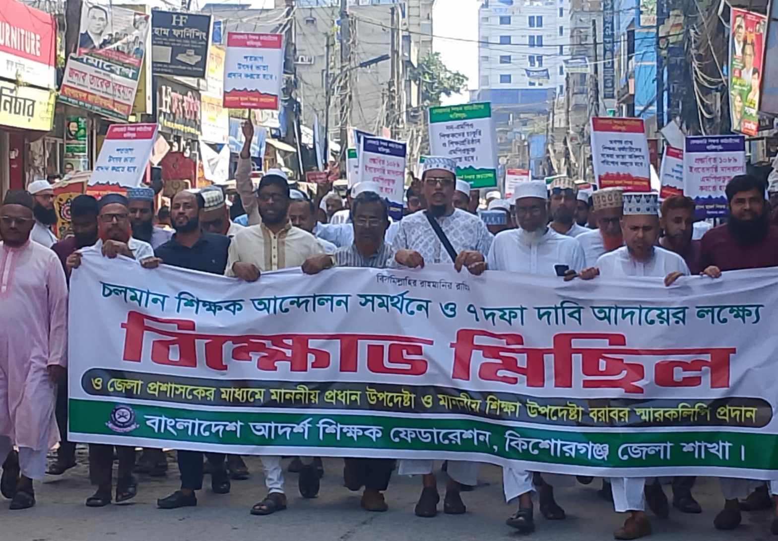 ৭ দফা দাবি আদায় ও পুলিশি হামলার প্রতিবাদে কিশোরগঞ্জে শিক্ষকদের বিক্ষোভ