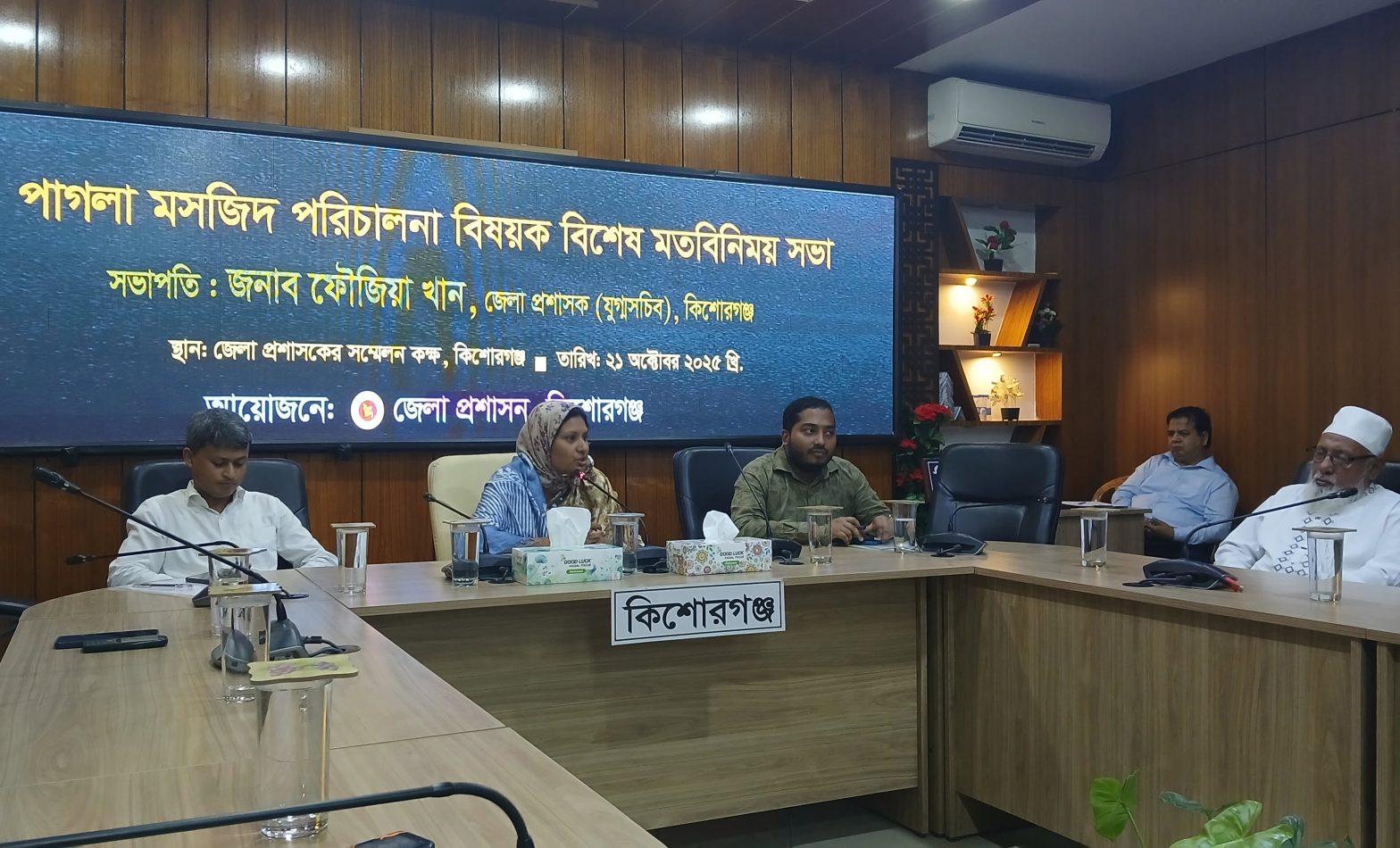 কিশোরগঞ্জ প্রতিনিধি : কিশোরগঞ্জের ঐতিহাসিক পাগলা মসজিদ পরিচালনা বিষয়ে বিশেষ মতবিনিময় সভা অনুষ্ঠিত হয়েছে। মঙ্গলবার (২১ অক্টোবর) বিকালে জেলা প্রশাসকের কার্যালয়ের সম্মেলন কক্ষে এ মতবিনিময় সভা অনুষ্ঠিত হয়।