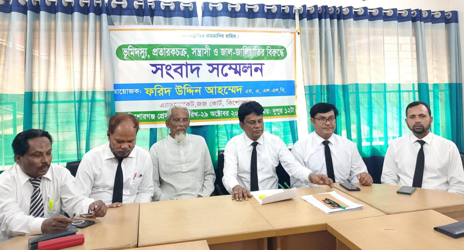 বুধবার(২৯ অক্টোবর) দুপুরে কিশোরগঞ্জ প্রেসক্লাবে আয়োজিত এক সংবাদ সম্মেলনে লিখত বক্তব্য পাঠ করেন জেলা আইনজীবী সমিতির সদস্য এডভোকেট ফরিদ উদ্দিন আহমদ।