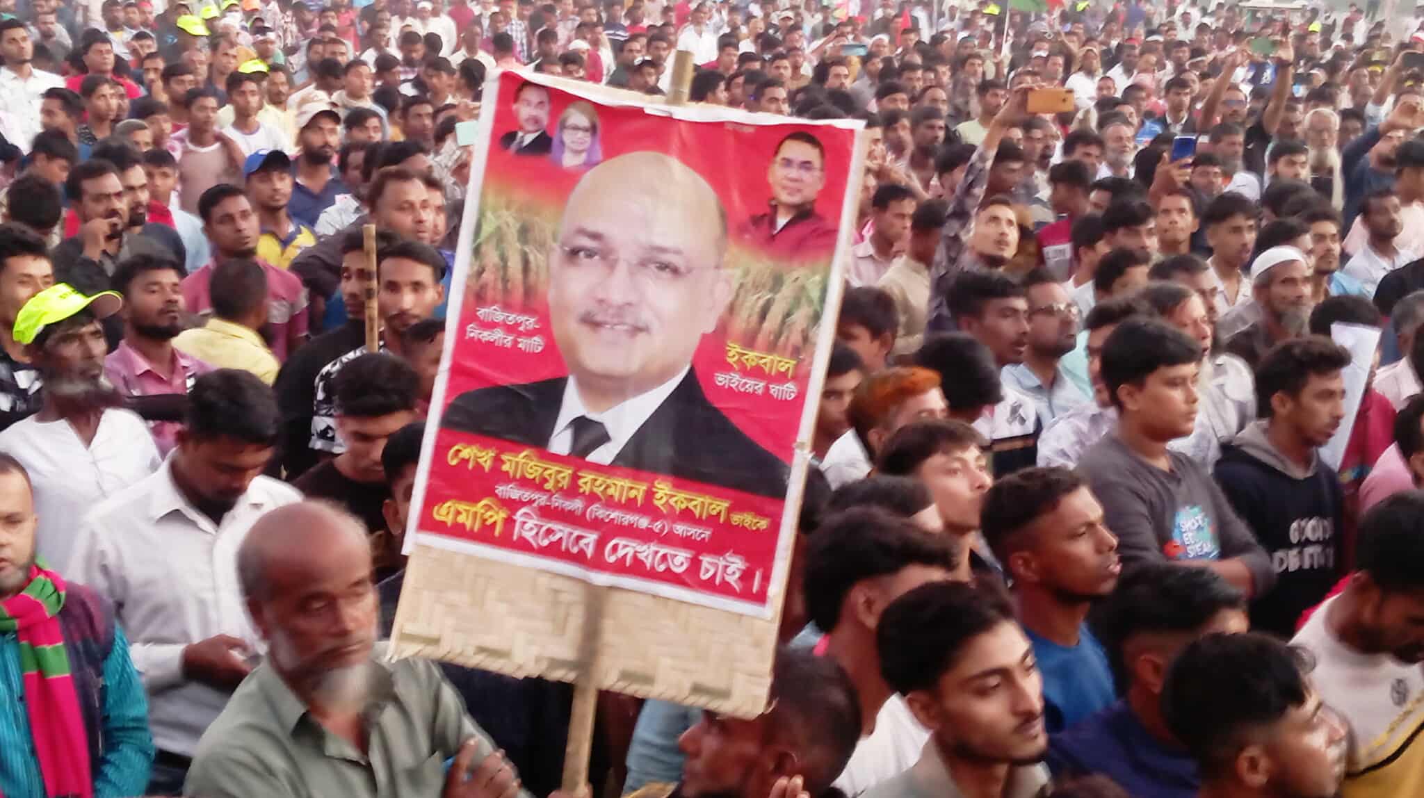 মিছিলের স্লোগান ছিল—‘দুর্দিনের ইকবাল ভাই, আমরা তোমায় ভুলি নাই’, ‘ইকবাল ভাই যোগ্য লোক—মনোনয়ন তাঁরই হোক’, ‘এ আসনে প্রার্থী যাঁরা—ইকবাল ভাই সবার সেরা’ ইত্যাদি।
