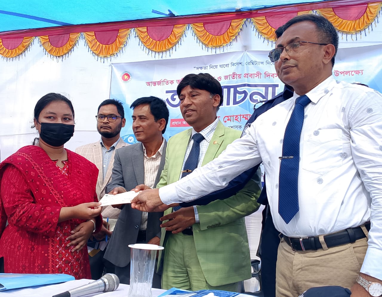 কিশোরগঞ্জ প্রতিনিধি  : প্রবাসী কর্মীর মেধাবী সন্তানদের শিক্ষাবৃত্তি, প্রবাসীর প্রতিবন্ধী সন্তানদের প্রতিবন্ধী ভাতা এবং সর্বোচ্চ রেমিট্যান্স প্রেরণকারী ব্যক্তি ও প্রতিষ্ঠানকে সম্মাননা দেওয়াসহ র‌্যালি, আলোচনা সভা ও জব ফেয়ার আয়োজনের মধ্য দিয়ে কিশোরগঞ্জে আন্তর্জাতিক অভিবাসী দিবস ও জাতীয় প্রবাসী দিবস উদযাপন করা হয়েছে। বৃহস্পতিবার সকালে জেলা প্রশাসন, জেলা কর্মসংস্থান ও জনশক্তি অফিস, কারিগরি প্রশিক্ষণ কেন্দ্র (টিটিসি), প্রবাসী কল্যাণ ব্যাংক এবং প্রবাসী কল্যাণ সেন্টারের আয়োজনে কিশোরগঞ্জ কারিগরি প্রশিক্ষণ কেন্দ্রে ‘দক্ষতা নিয়ে যাবো বিদেশ, রেমিট্যান্স দিয়ে গড়বো স্বদেশ’ প্রতিপাদ্য বিষয়ের উপর অনুষ্ঠিত আলোচনা সভায় প্রধান অতিথি ছিলেন জেলা প্রশাসক মোহাম্মদ আসলাম মোল্লা। কিশোরগঞ্জ কারিগরি প্রশিক্ষণ কেন্দ্রের অধ্যক্ষ মোহাম্মদ জাভেদ রহিমের সভাপতিত্বে এতে বিশেষ অতিথি ছিলেন অতিরিক্ত পুলিশ সুপার (প্রশাসন ও অর্থ) মুকিত সরকার। আলোচনা সভায় অন্যদের মধ্যে অতিরিক্ত জেলা প্রশাসক (উন্নয়ন ও মানবসম্পদ ব্যবস্থাপনা) মো. ইশতিয়াক ইমন, আঞ্চলিক পাসপোর্ট অফিসের সহকারী পরিচালক মো. অলিউল ইসলাম, বিআরটিএ’র সহকারী পরিচালক মো. কামরুজ্জামান, ইসলামী ব্যাংকের ভাইস প্রেসিডেন্ট মো. সাইফুল ইসলাম, কিশোরগঞ্জ সেন্ট্রাল প্রেস ক্লাবের সভাপতি আশরাফুল ইসলাম, কিশোরগঞ্জ প্রেস ক্লাবের সাধারণ সম্পাদক সাইফুল মালেক চৌধুরী, জনশক্তি জরিপ কর্মকর্তা মো. ইব্রাহিম মিয়া প্রমুখ বক্তব্য রাখেন। আলোচনা সভা শেষে ২০২২ সালের এইচএসসি পরীক্ষায় কৃতিত্বপূর্ণ ফলাফল অর্জনের জন্য প্রবাসী কর্মীর বিশ^বিদ্যালয় পড়–য়া তিনজন মেধাবী সন্তানের হাতে শিক্ষাবৃত্তির চেক তুলে দেন প্রধান অতিথি জেলা প্রশাসক মোহাম্মদ আসলাম মোল্লা। অনুষ্ঠানে প্রবাসীর প্রতিবন্ধী সন্তান হিসেবে একজনকে প্রতিবন্ধী ভাতার চেক তুলে দেওয়া হয়। এছাড়া সর্বোচ্চ রেমিট্যান্স প্রেরণকারী মো. মাহমুদুল হক পিয়াস ও তাহমিনা বেগমের পরিবারের সদস্যদের হাতে এবং সর্বোচ্চ রেমিট্যান্স গ্রহণকারী ব্যাংক হিসেবে ইসলামী ব্যাংকের ভাইস প্রেসিডেন্ট মো. সাইফুল ইসলামের হাতে সম্মাননা স্মারক তুলে দেওয়া হয়। পরে প্রধান অতিথি জেলা প্রশাসক মোহাম্মদ আসলাম মোল্লা বেলুন উড়িয়ে জব ফেয়ারের আনুষ্ঠানিক উদ্বোধন করেন ও জব ফেয়ারের ১২টি স্টল ঘুরে দেখেন। এছাড়া এ উপলক্ষ্যে আয়োজিত র‌্যালিতে অতিথিরা অংশ নেন। দিবসটি উদযাপন অনুষ্ঠানে সংশ্লিষ্ট প্রতিষ্ঠানসমূহের কর্মকর্তা-কর্মচারীরা ছাড়াও বিদেশ গমনেচ্ছু প্রশিক্ষণার্থী এবং নানা শ্রেণিপেশার মানুষ উপস্থিত ছিলেন।